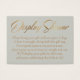 Le point focal de cette carte subtile et élégante sont des mots et des phrases clés dans une police élégante, inclinée, élégante et ajoutée comme des superpositions graphiques. Les mots "Display Shower" sur l'avant et "To :" et "From :" sur le dos rendu dans ce script ont également été embelli avec un effet glamour de fausse feuille d'or lisse pour ajouter à l'ambiance festive. Un champ modèle a été mis en place pour donner des instructions aux clients qui n'enveloppent pas leur cadeau, dans une couleur dorée correspondante. N'hésitez pas à modifier le libellé de quelque façon que vous le souhaitez. Il existe de nombreuses alternatives populaires à ce texte, si vous souhaitez un changement. Vous pouvez changer l'arrière - plan à n'importe quelle couleur que vous préférez. // 78 //