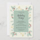 Des baies rouges, des feuilles de sauge et d'or entourent vos informations de fête en lettres chic sur ces invitations de fêtes de Noël.