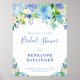 Élégante Fête des mariées Florale Bleu Affiche de bienvenue
