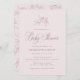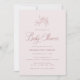 Elégante Bébée Fille Rose Douche Invitation. Romantique et intemporelle, cette élégante invitation au baby shower présente des pivoines florales d'art vintage, utilisables pour n'importe quelle saison. Ajoutez une touche d'élégance moderne et classique à votre journée spéciale avec ces invitations élégantes et magnifiques. Texte rose poussiéreux sur un arrière - plan rose pâle avec un joli motif de coordination à l'arrière.