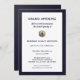 Faites une grande fête avec notre Elégante Grande Invitation d'Ouverture. Avec un design classique avec une police bleu marine, un logo de sceau or brossé personnalisable et un cadre d'impression texturé bleu marine riche, cette invitation donne le ton parfait pour le grand jour de votre entreprise. Personnalisez simplement avec votre nom d'entreprise, les détails de l'événement et les informations RSVP pour créer une invitation mémorable et sophistiquée. Faites une impression durable avec ce design intemporel.