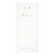 Cette carte de menu mariage est conçue sur un thème minimaliste et monochrome, avec ses initiales vert sauge et sa bordure. Le mot "Menu" est écrit avec élégance dans la typographie de script vert sage, ajoutant une touche de sophistication à votre journée spéciale. En plus de ce magnifique détail, la carte présente également les initiales du couple, ce qui en fait un gardien personnalisé. La carte comprend toutes les informations nécessaires sur votre menu mariage, afin que vos invités soient bien informés. Le texte est entouré d'une fine bordure verte à la sauge, complétant le design général. Sur le dos de la carte, vous trouverez une couleur verte sage avec des initiales et une bordure blanche, créant un look cohésif et élégant. La couverture a été conçue à l'aide de certains actifs de Freepik.com