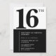 Elégante invitation 16e anniversaire Black Chic Modern calligraphie typographie classique homme élégant homme mâle