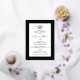 Créez une ambiance classique pour votre fête avec cette élégante invitation en noir et blanc. accentué avec du papier peint dans votre choix de couleurs - or rose (montré) ou or jaune ou argent. L'avant présente des illustrations d'esquisses d'un rose et d'un feuille ainsi que du texte noir qui est facilement personnalisable à l'aide des modèles de texte fournis. Une ligne de texte ou de nom est présentée dans la couleur du papier. L'envers a une motif à rayures noir et blanc moderne. Simple mais intemporel.