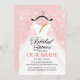 Ce design exquis présente une élégante invitation à la douche nuptiale, centrée autour d'une belle robe blanche mariage accrochée gracieusement à un cintre classique. La robe est ornée d'une subtile parties scintillant dorée qui détaille le buste, ajoutant une touche de glamour et de sophistication. L'ensemble est dressé contre un arrière - plan rose moelleux et pétillant aux effets de boukeh délicats, créant une atmosphère onirique et festive. Cette oeuvre capture parfaitement l'excitation et la joie qui ont conduit à un mariage, célébrant "NOTRE MARIÉE" avec style et grâce. Le design est un mélange d'élégance moderne et de charme intemporel, idéal pour donner le ton d'une douche nuptiale mémorable et chic. Il incarne l'essence de l'anticipation, de l'amour et de la magie du voyage spécial de la mariée.