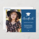 Scénario de typographie et casquette de graduation royal classique et tendance faisant une élégante carte postale d'invitation à la fête grad. +++++++++++ Facile à personnaliser avec votre photo, détails et initiales monogramme / nom des deux côtés ! ++++++++++++++++++++++++++++++ Si vous avez besoin d'une couleur spécifique, envoyez-moi un message.