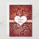 élégante vintage damask rouge fleurs motif et coeur d'amour, invitation de fiançailles personnalisées.
