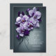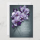 Une élégante invitation de mariage avec des orchidées de couleur violet foncé.