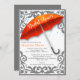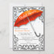 Cette élégante invitation à la douche nuptiale dispose d'un grand parapluie orange avec de beaux coins décoratifs à rouleaux et des gouttes de pluie. Facile à mettre à jour avec vos détails.