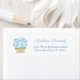 Retourner la conception de l'étiquette d'adresse avec des plantes d'hydrangée dans un panier en osier. Eléments peints à la main par moi en aquarelles avant d'être scannés sous forme numérique.