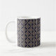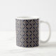 Il s'agit d'une tasse en céramique design, ornée d'un arrière - plan bleu profond et d'une motif géométrique blanche complexe. Le design est à la fois élégant et intemporel, ce qui le rend parfait pour un usage quotidien ou comme pièce décorative. Sa poignée robuste et sa finition lisse assurent confort et durabilité, idéal pour savourer vos boissons chaudes ou froides préférées.