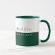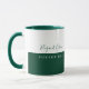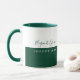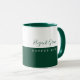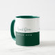 Une tasse verte élégante et moderne, avec deux lignes de texte...