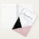 Design géométrique moderne avec parties scintillant d'or imitation rose, marbre blanc et noir.