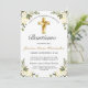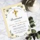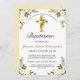 Celebre el bautismo de su hijo o hija con amigos y familiares invitándolos con esta elegante invitación de bautizo de oro y Amarillo. Este diseño presenta una hermosa cruz con un marco floral sobre un fondo blanco simple. Personaliza el texto y la fuente a tu gusto. Otras fuentes y estilos disponibles. Contáctanos con tu solicitud especial y estaremos encantados de ayudarte.
