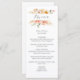 Elégant Menu modèle avec des détails floraux d'aquarelle exquis dans un beau mélange de pêche, orange, roux, corail poussiéreux, crème et champagne. Facile à remplir en modèle avec votre nom, date et description du menu. Si nécessaire, vous pouvez utiliser l'outil d'édition et modifier le style de texte, la taille, la position et même la couleur. Retournez dans la couleur blanche arrière - plan qui peut être changée en n'importe quelle autre couleur que vous voulez à l'aide de l'outil d'édition. Une partie de nos collections "Peach Floral Delight" avec une variété de produits de coordination disponibles, y compris des numéros de table, des cartes de sièges et des étiquettes de faveur.