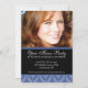 Faites de ce moment spécial quelque chose à chérir avec ces invitations faites à la fête à l'occasion de la remise des diplômes photo. Un motif damassé bleu riche orne le fond ou ces invitations de poids lourd.