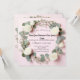 Ce design intemporel présente une fine bordure florale de roses blanches, le souffle du bébé et des feuilles d'eucalyptus sur un arrière - plan rose pastel. Parfait pour les couples à la recherche d'un thème mariage classique et romantique