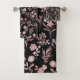 Elégant or rose délicat petites fleurs de jardin peint à la main noir design, avec une collection d'or rose faux métallique et roses noirs, rose or marguerite fleurs avec diverses feuilles roses formes peinture à la main verte, sur un arrière - plan de couleur noire. Une nature botanique unique art floral, idéal pour une nature botanique printanière look décoration de luxe or rose.