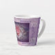 C'est une élégante "One of a Kind" Rose et Lace Latte Mug ! Il présente une belle rose rose rose entourée de fleurs d'haleine de bébé...Niché dans un Arrière - plan pourpre et rose avec une bordure en dentelle! Art Graphique Original Par L'Artiste Kerry Miller