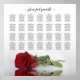 Ce magnifique tableau de 28 sièges mariages de table présente l'image d'une rose rouge allongée sur son côté, réfléchissant dans l'eau avec des vagues et des ondulations. Le titre dit "s'il vous plaît trouvez votre table" dans élégante calligraphie de script en dentelle. Il y a de la place pour les noms des couples et la date du mariage. Ce tableau a des affectations de table pour 280 invités 10 personnes par table.