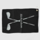 Élégant Monogram Golf Towel avec des clubs de golf croisés en aquarelle argent sur arrière - plan noir.
