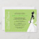 Une élégante invitation à la douche nuptiale pour la mariée moderne. Une mariée silhouette se dresse contre un arrière - plan à motifs tourbillonnants. Disponible en couleurs alternatives. Veuillez nous contacter si vous cherchez une autre combinaison de couleurs. Des cartes de remerciement, des faveurs et des frais d'affranchissement sont également disponibles.