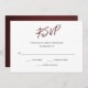 Cette magnifique carte RSVP de mariage présente une calligraphie couleur marsala / bordeaux ainsi qu'un texte noir moderne, sur un élégant arrière - plan blanc. Parfait pour un mariage traditionnel et formel avec une touche moderne !