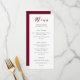 Ce magnifique menu mariage est composé de calligraphie couleur marsala/bordeaux et de texte noir moderne, sur un élégant arrière - plan blanc. Parfait pour un mariage traditionnel et formel avec une touche moderne !