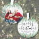 Nom personnalisé Élégant Verdure Joyeux Script de Noël Famille Photo Personnalisée Ornement Daté. Créez une tenue de vacances personnalisée avec cet élégant ornement de Noël, avec une grande photo de famille encadrée par une végétation botanique luxuriante. Le haut présente un dégradé blanc sans soudure qui se fond en branches de pins, en feuilles à feuillage persistant et en baies sèches rouges, offrant une touche festive et élégante. Le fond reprend le thème botanique, avec de la verdure au sommet et au fond. "Joyeux Noël" est élégamment scénarisé à travers l'ornement, avec votre nom de famille et l'année affichée ci-dessous. Parfait pour célébrer la saison, cet ornement est personnalisable avec votre photo de famille chère, ce qui en fait un ajout intemporel à votre décor de vacances.