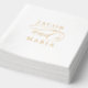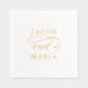 Les serviettes élégantes en feuille de mariage comprennent de jolis scripts de calligraphie et les noms du couple de mariages dans la typographie classique personnalisée.