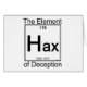 Feeling cheated? Science has isolated a new chemical in the periodic table - an element of deception, abbreviated as HAX. This geeky substance is generated in abundance by opponents in online gaming. Slang chemistry for the masses - a nice gift for gamers or anyone. Woot!