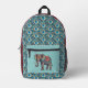 Elephant and Deep Aqua Red Mandalas n Initials Printed Backpack