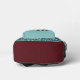This elegant and unique backpack features a colourful elephant with aqua (almost turquoise) and red-orange decorations, with a blue and gold teardrop mandala pattern in the background. The pocket has an deep aqua background. The sides and top are trimmed in a complementary brownish burgundy. Your initials (if you want them) appear in a peach colour on the left side. Make sure to enter the initials you want (or delete if you don't want initials).