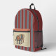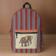 Elephant and Dusty Blue Red Stripes with Monogram Printed Backpack