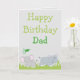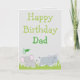 The perfect birthday card for dad, this item features a gray background with green grass, a green font, and an elephant and hippo. "Happy Birthday Dad" is written in lovely green font. On the inside is a place for inserting your family photo. Personalize yours today!