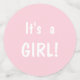 This cute table confetti set is perfect for a baby shower, especially when the expected little one is a girl! In tones of pink and soft grey, the feature is an image of a grey elephant mom cuddling her baby. Other images include hearts and a polkadot pink star. Your custom text is in white on a pink background. Wonderful for a gender reveal party! Graphics by Prettygrafik Design, © Prettygrafik.com