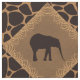 Alternating squares set on a diagonal of a deep chocolate brown elephant set in a medium-brown faux grassy texture diamond shape that is bordered in pattern of tall blades of grass. Alternating pattern with a dark-chocolate brown (almost black) and tan giraffe animal print background.