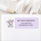 Étiquette d'adresse de retour personnalisable avec un petit éléphant mignon sur un arrière - plan de lavande. Peut être utilisé pour un baby shower, une arrosage, un anniversaire ou une autre occasion. Conçu pour correspondre à notre collection d'éléphants Lilac. Cette collection comprend également des invitations assorties, des insertions, des signes, des décorations de fête, des étiquettes de faveur et bien d'autres!