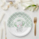 An adorable baby elephant with green ears and bow on it's head on a green and white diamond pattern is featured on these gender neutral baby shower paper plates. Also available in pink and blue. MATCHING items in our store.