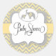 This baby shower sticker can be used on invitation envelops, as cupcake toppers or other places where a coordinating design is needed. The sticker has Momma and Baby elephant in grey with chevron yellow and grey ears and background to match. You can also add a date to your sticker if needed.
