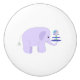 A cute elephant doing a balancing act with plates and a ball on his trunk.