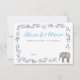 Gather advice for the mama-to-be at her baby shower with these sweet baby shower advice cards which make lovely keepsakes for the mother to be. Pretty modern blue and grey florals and a baby elephant decorate this design.