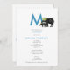 Elephant Blue Baby Boy Initial Baptism Christening Invitation