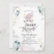 Cute baby shower invitation features baby elephant with flowers and butterflies. These baby shower invitations are easily customized for your event by simply adding your details.