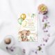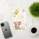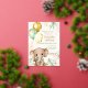 Welcome your little one with this sweet and whimsical baby shower invitation! This design features a charming hand-painted watercolor baby elephant adorned with a mint green bow, holding a bunch of festive gold and sage green balloons. Set against a lush backdrop of tropical monstera leaves and soft pink palm fronds, this invitation brings a trendy botanical boho feel to your celebration.