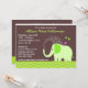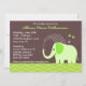 Sweet invitation for your baby shower has a green elephant showering himself with water while three butterflies flutter above him. Darling invitation in green and brown with one pink butterfly. Double-sided design.
