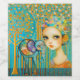 A stylized, colourful elephant stands next to a girl with large eyes and a whimsical, patterned hat. Bright, dotted trees and vibrant vertical stripes fill the background with a sense of fantasy and wonder. Digital Art Photoshop CS5