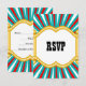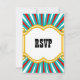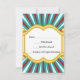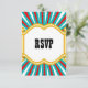 RSVP Reply Card, Personalized Circus theme, for all occasions. This elephant animal design is a great touch for the collector or lover of pachyderms. An indian elephant is adorned with a red cloth on his back, for the circus or other occasion, with red tassels and a decorative neck piece with a fun turquoise teal and red stripe background and circus lights around the perimeter. The has his trunk up for good luck. Design Copyright © CustomInvitesOnline.
