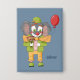 Elephant Clown Kid Blue Rectangular Button