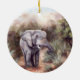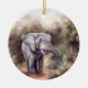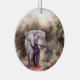 From an oil painting by Brenda Thour of an elephant in Africa coming through the brush in greys, greens and browns. Reference Photo by Dr. Thomas Trainer. Copyright by Brenda Thour 2006.